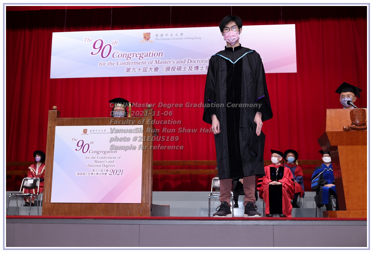 • 大學畢業典禮(University Congregation)-> 香港中文大學-> CUHK 90th Congregation-> Date 6th Nov 2021-> Faculty of Education->04 Master Degree Part I